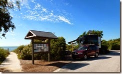 site 17 with water/electric (50A) with paved roads and level pea gravel pads. Native plants separated the sites nicely and we were right on the calm Atlantic Ocean! We used the bathhouse for showers (clean) to conserve our tanks. The park’s day use area is separate enough from the gated cg to give us quiet days. There is a nice paved bike path across Hwy 1 which we used often with our friends. Located midway along the chain of the Keys, with Publix Grocery and KMart nearby. Close enough to Key West for a couple of day trips!